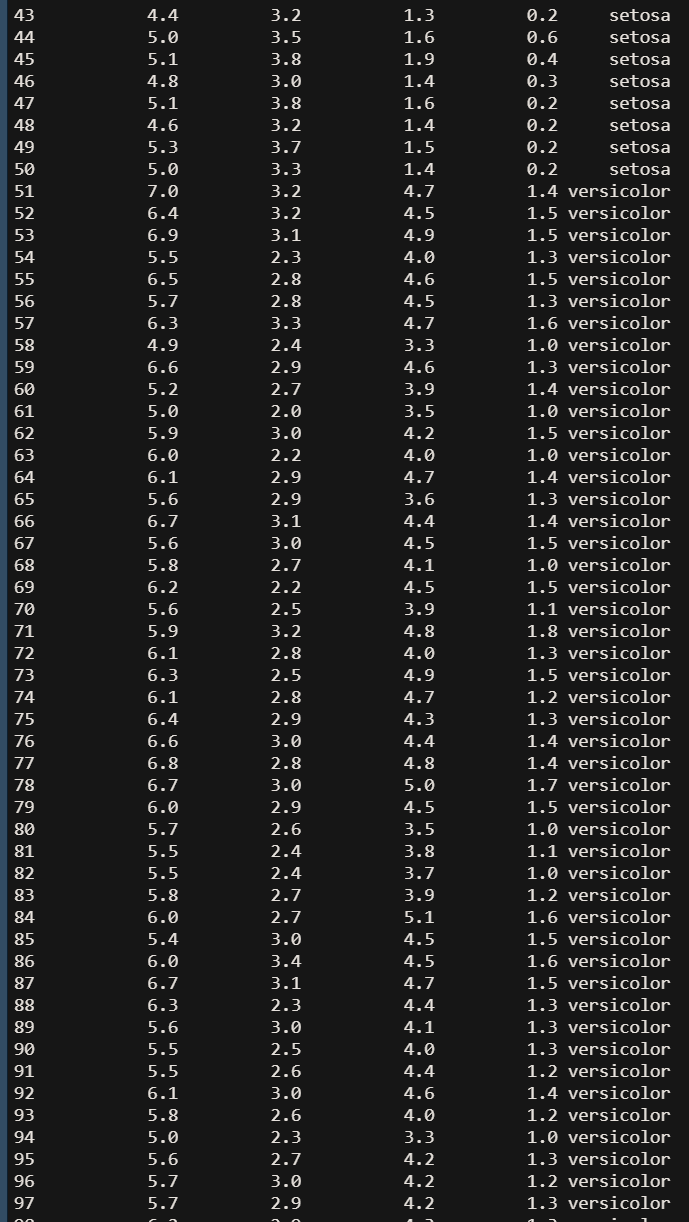 iris [2:4, c(3,3)] #2 ~4행이고 3, 3열 데이터