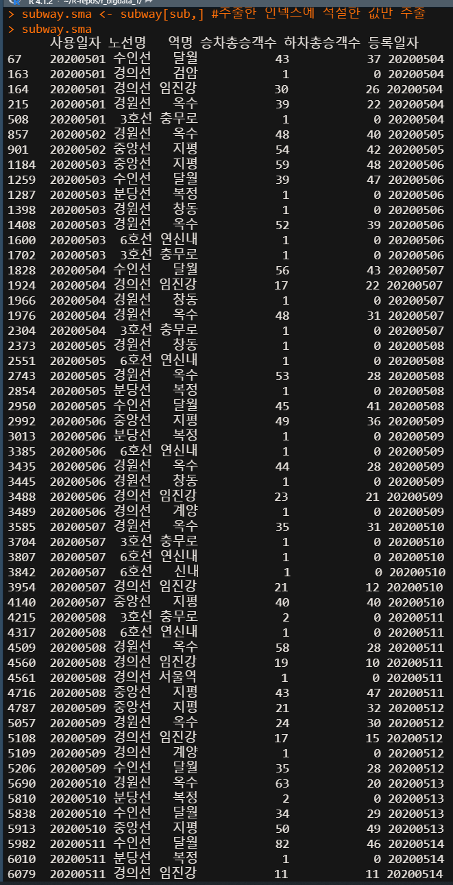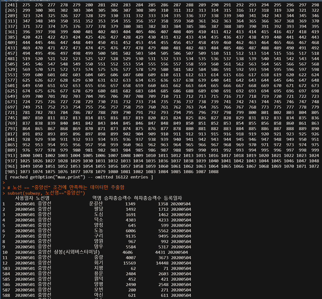 sub <- which(subway$하차총승객수<50) #하차 총 승객수가 50 이하인 인덱스