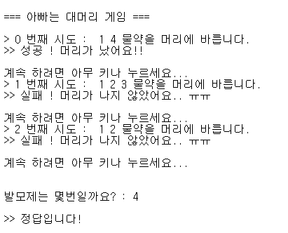 printf("\n\n === 아빠는 대머리 게임 === \n\n");