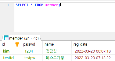 실제라면 DBConnection을 따로 뺴두고 쓰는 것이 더 맞겠으나 기본을 익힌다는 생각으로 일일히 작성했다.