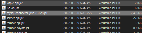 tomcat 라이브러리 폴더에는 DBCP API 관련 jar 파일이 제공되어 있다.