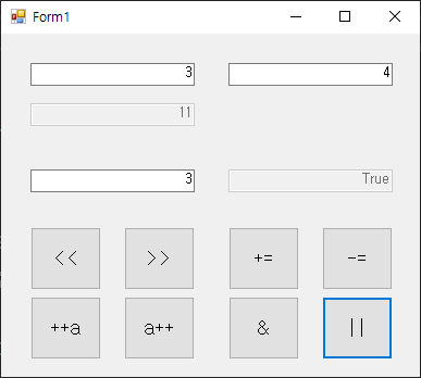 | 논리 연산자 | &&, ||, ! | a && b | 논리 합, 논리 곱, 부정의 결과가 True, False |