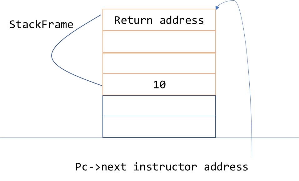 foo가 종료될때 Return Address를 통해 어디로 가야할지 정하고 foo로 할당된 StackFrame 메모리를 해제한다.